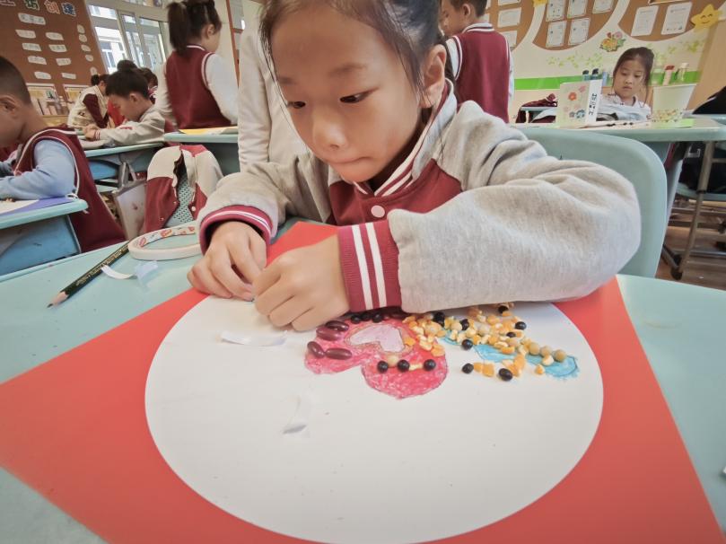 最后,讲师们让同学们发挥想象,亲自体验了粮食画的制作过程,通过让同学们计算出自己图画中所用五谷的数量,让他们直观感受到了粮食的来之不易,引导同学们深入思考我们该如何做到不浪费粮食。同学们积极探讨自己在生活中能做出哪些力所能及的事,如养成按需准备食物、打包带走吃不掉的食物等习惯,以自己的一份力,加入到节约粮食的行动中。
