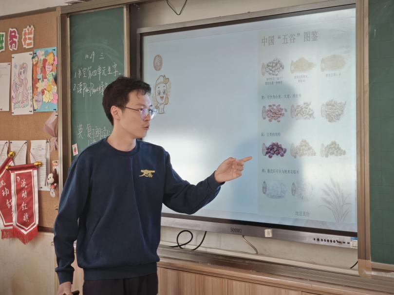 讲师们向同学们展示了一些五谷杂粮的图片,并让同学们尝试着能否辨别出自己认识的几种谷物。随后向大家科普了传统的五谷杂粮究竟是什么。各色的谷物与其新奇的分类,激发了同学们对粮食的兴趣。