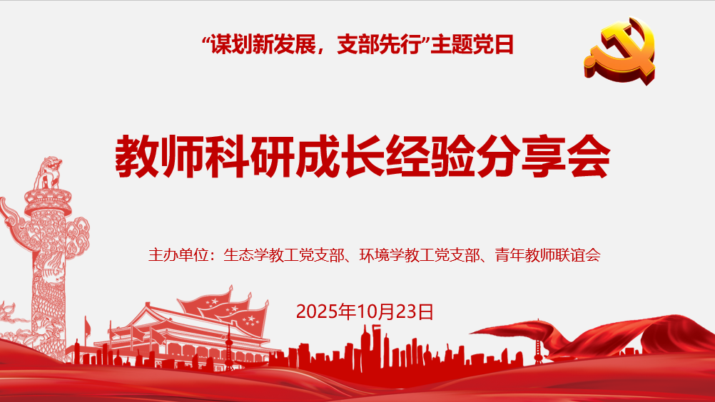 2025年10月23日下午,av影片 生态学教工党支部、环境学教工党支部联合学院青年教师联谊会共同举办“谋划新发展,支部先行”教师科研成长经验分享会。活动特邀北京师范大学孙可教授和南京大学周艳莲教授,就科研和基金申请经验、个人成长路径等内容进行分享。av影片 副院长关小红教授、教工党支部成员及部分新入职教师等参加了本次活动。活动由生态学教工党支部书记郑泽梅主持。