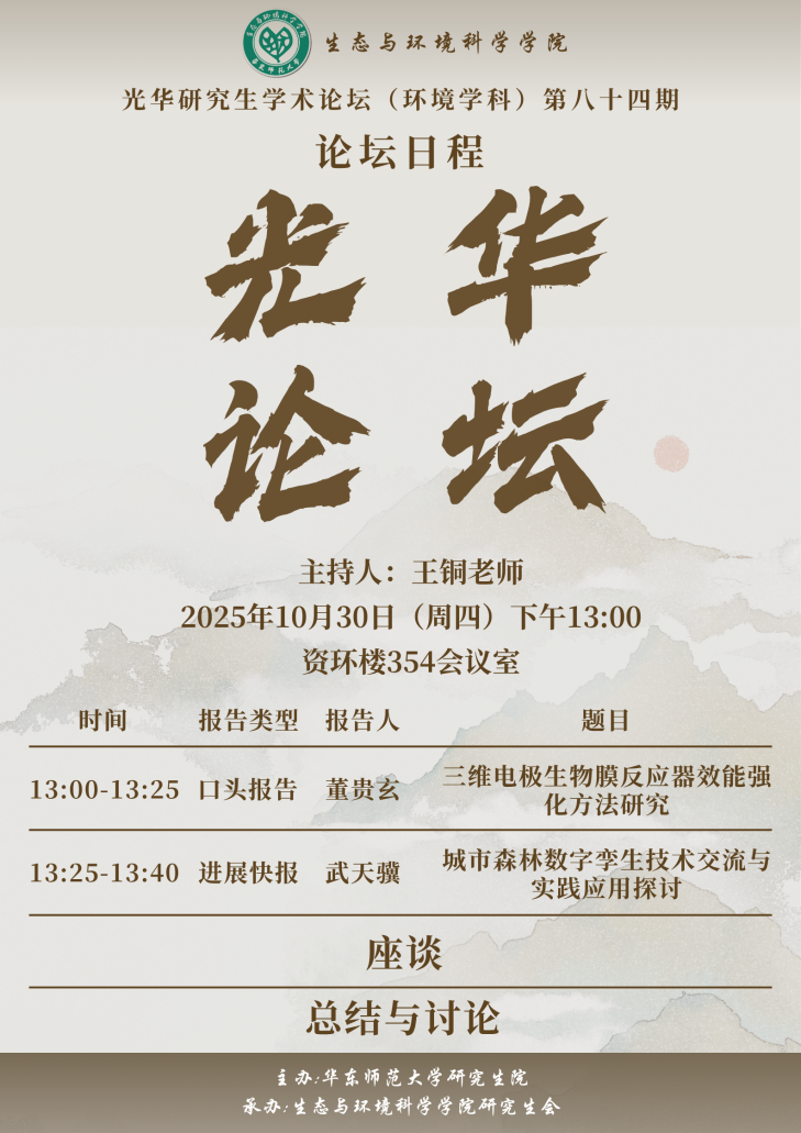 2025年10月30日下午13:00av影片 第84期研究生光华学术论坛(环境学科)在资环楼354会议室顺利举行,本期论坛由学院王铜老师主持,嘉宾老师为博士后刘富强老师。