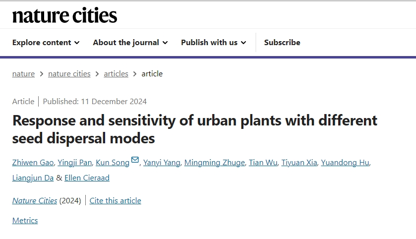 av影片 达良俊与宋坤研究团队,在Nature Cities上发表了题为“Response and sensitivity of urban plants with different seed dispersal modes”的研究论文,揭示了不同种子传播方式的自生植物的物种丰富度的影响因素及其敏感性差异,为阐明城市植物多样性维持机制提供了新的理解。av影片 宋坤(副教授)为论文的通讯作者,av影片 高志文(博士后)为论文的第一作者,中科院东北地理与农业生态研究所研究员潘应骥为论文第共同一作,合作作者单位包括:西安建筑科技大学、东北林业大学、昆明学院、新西兰Nelson Marlborough Institute of Technology。