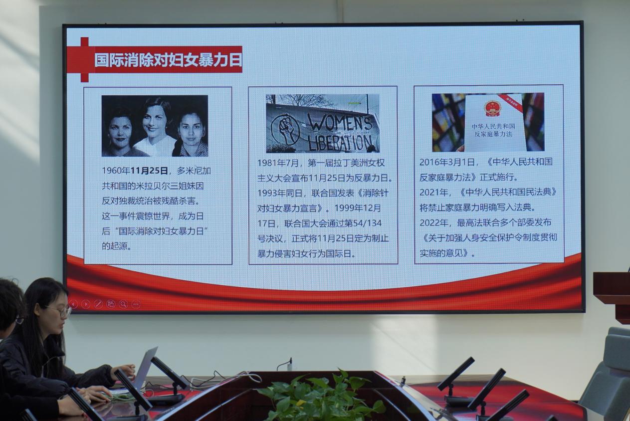 第一部分主题为“党的初心与妇女解放之路”,由张圣丹同志带领大家系统梳理妇女解放事业的历史脉络与时代使命。她首先从“国际消除对妇女暴力日”的设立背景切入,阐明反对性别暴力是国际社会的共同责任,更是中国共产党百年奋斗的重要坚守。从《消除对妇女的一切形式歧视公约》到我国《反家庭暴力法》的颁布实施,一条保障妇女权益、反对性别压迫的红线贯穿始终,彰显了中国在妇女事业上的坚定立场与务实行动。