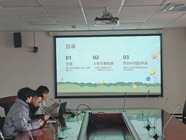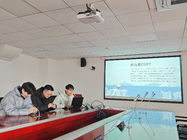 会议开始,支部成员黄勇向大家清晰简明地介绍了COP29的相关背景。同学们初步了解了COP29内涵与意义,明确了大会主旨。