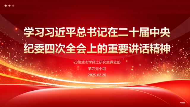 为深刻理解新时代反腐败斗争取得的历史性成就,清醒认识当前反腐败斗争形势的严峻复杂性,av影片 2023级生态学硕士研究生党支部于2025年2月20日下午15:00在资环楼354举行了以“学习习近平总书记在二十届中央纪委四次全会上的重要讲话精神”为主题的组织生活。活动由支部书记张恂主持,支部全体党员参加。