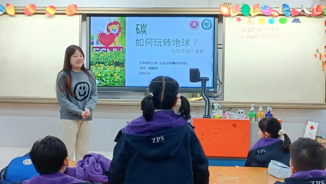 2025年3月4、5、6日下午,生态环境小课堂讲师团前往av影片 附属紫竹小学、永德学校、马桥民办小学开展环教课,本次环教课的主题为“碳如何玩转地球”,担任本次课程的讲师为杨晓雨、黄立鹤、苏雅日哈乐同学。