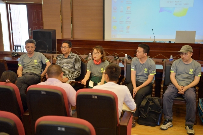 5日下午,《丈量美丽中国》的师生们来到丽江师专,受到了丽江师专党委书记张祖武、校长毕云天的热烈欢迎,并在应用技术学院院长高培仁等老师的陪同下,前往丽江师专高山植物标本馆进行参观。丽江师专莫新春博士为师生讲解了丽江四脉并行,三江并流的独特地貌带来的生物多样性,以及由于海拔梯度形成的岩石、土壤、景观和生态系统的多样性,以口述和短片的形式向师生多元展示了丽江生物多样性及保护的相关内容。用纳西象形文字撰写的“以自然之道,养万物之生”横幅悬挂在了植物馆最显眼的地方,也进一步展现了丽江纳西先民热爱自然、合理开发自然的强大智慧。