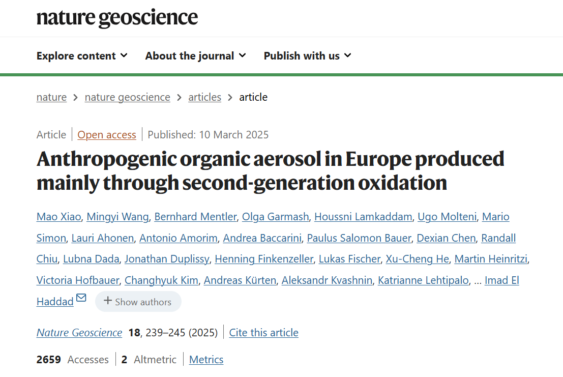 av影片 姜建惠青年研究员与国际同行合作,基于欧洲核子中心CLOUD烟雾箱模拟了典型城市雾霾的生成与氧化过程,在分子水平解析了芳香族化合物的多代氧化机制,并结合区域空气质量模型评估了二次氧化过程对欧洲人为源有机气溶胶的贡献。该研究成果以Anthropogenic organic aerosol in Europe produced mainly through second-generation oxidation为题,于2025年3月10日发表在Nature Geoscience。