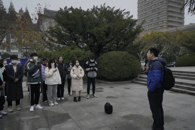 上午8点,师生一行准时从宝龙广场出发,经过1个小时后抵达了中北校区。同学们从枣阳路大门进入学校,步行到毛主席像广场,张勇老师在此将本次实习课的主要内容和安排向同学们做了简要介绍。