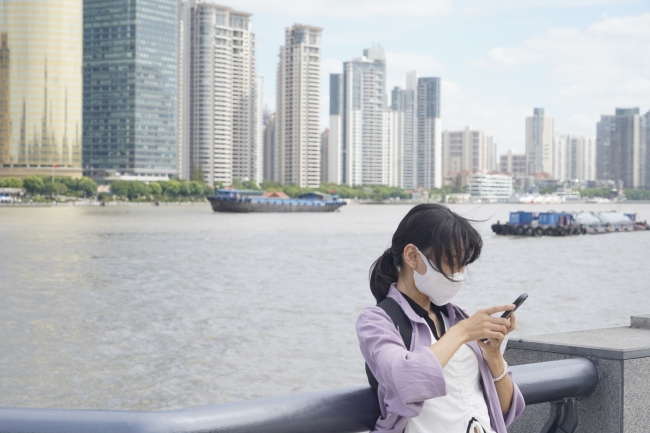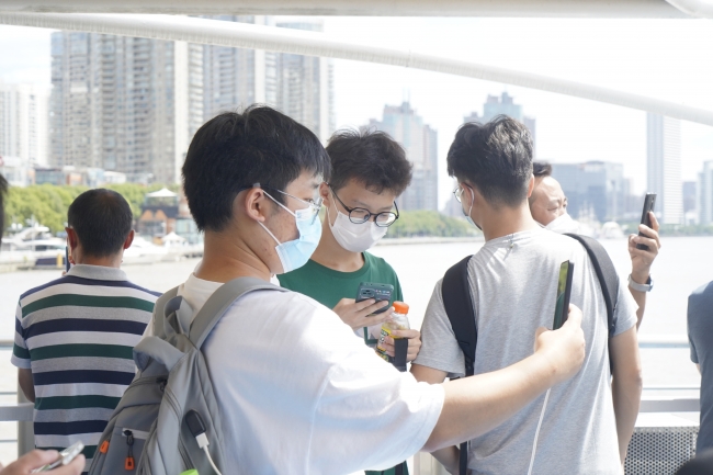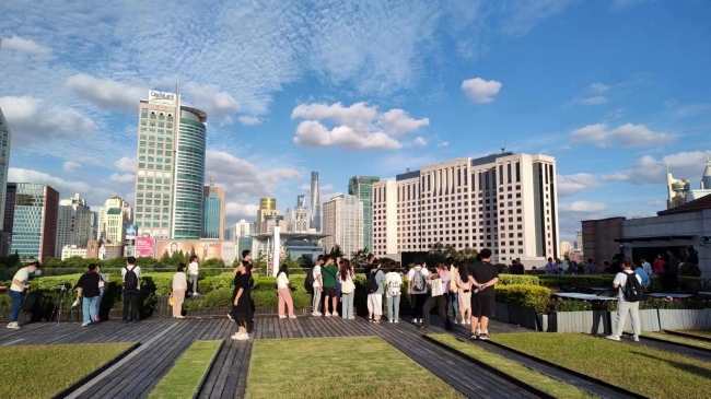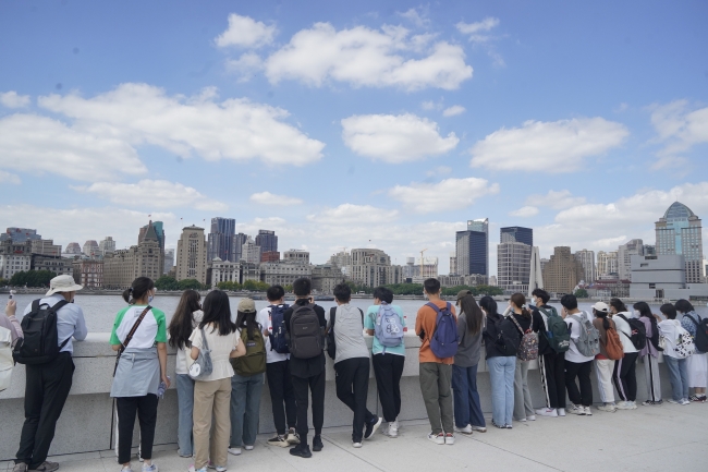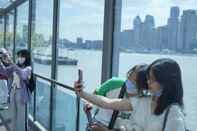 在浦东的滨江步道步行结束后,同学们一起乘轮渡到达了 浦西外滩。