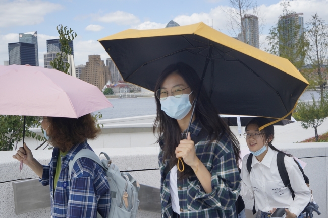 之后往西面看,那几处老楼房和几处空地,就是上海的“老县城”原址,其与浦东的摩天大厦形成对比,向同学们展示了上海城市的融合性。而在最远出的“黑黑的地方”,就是离上海中心大概18公里远的虹桥机场。之后,张老师带着同学们找到了中山公园龙之梦,那华师大中北校区就在附近。当同学们抬头望到远处“灰雾”,这就是通常在地面45°、90°都不容易看到的PM2.5。张老师又相应介绍了上海、北京、山西等国内的PM2.5浓度,并与澳大利亚和美国的PM2.5浓度进行了对比,告诉同学们我国大气污染防治工作依然任重而道远。