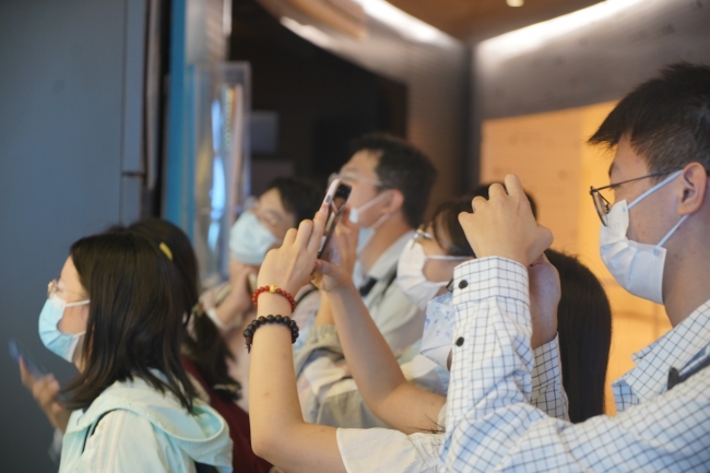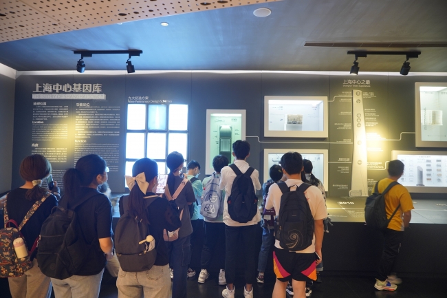 同学们在检票之后首先来到上海中心大厦负二层的序展厅,了解了上海中心的“基因库”,以及国内外众多超高建筑的基本信息。