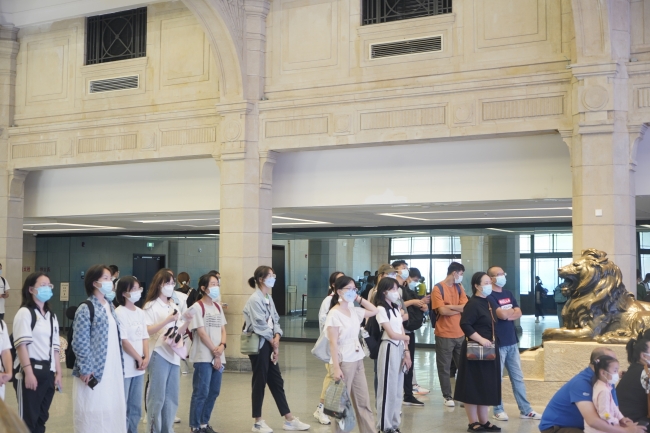 下午14:50同学们在上海市历史博物馆开启了下午的课程学习。进馆之前,老师邀请了4位上海本地同学向同学们简要讲述一行自己眼中的上海历史。听完他们的讲述,同学们开始陆续入馆参观。