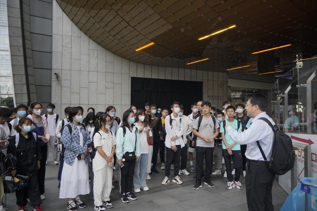 上午9点,到达上海中心大厦,同学们首先在票务中心门前集合,张勇老师向同学们简要介绍了上午的行程安排,并分享了关于上海中心的参观建议。
