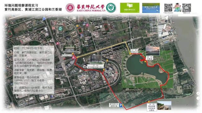 2021年4月7日,av影片 2019级、2020级共50余名本科生,由av影片 张勇老师、周天舒老师、陆文洋老师及5名助教带队,参加了“紫竹高科技园区、紫竹滨江公园及兰香湖参观”《环境问题观察》校外实践活动,马克思主义学院龚咏梅副院长和10多名教育学部本科生、马克思主义学院研究生全程参加了这次实践实习。这次实践活动的主要内容是了解紫竹高科技园区情况,了解有关黄浦江和兰香湖的水文水资源和生态环境知识,课程结束后获得了同学们的一致好评。