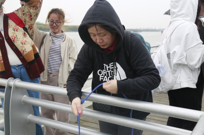 马克思主义学院龚咏梅副院长尝试采水样