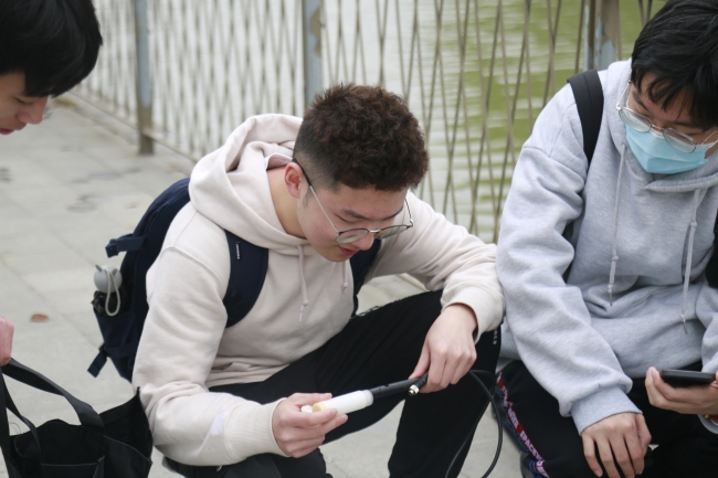 中午12:50,老师和同学们在紫竹高科技园区入口集合。本科生被分为两组,一组先进入紫竹高新区展示中心参观,另一组对其附近的老蒋家浜水质进行监测,两组结束后再交换进行监测和参观。