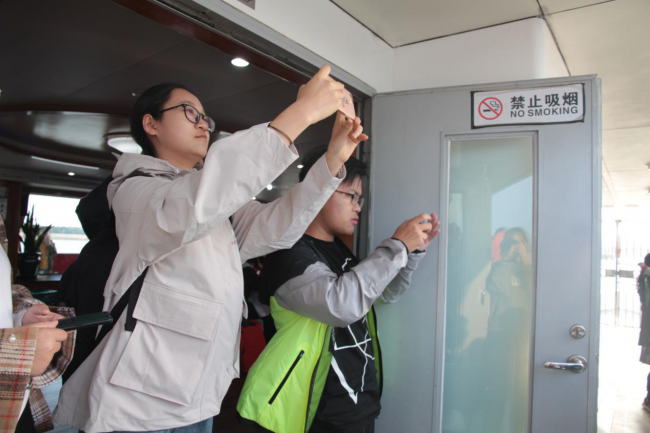 2019年10月23日,av影片 2019级环境科学与工程、生态学专业本科生以及2018级选修《环境水文学》本科生,由av影片 杨凯、张勇、周天舒、邓泓、郭雪艳、杨宁、王娟娟、刘科轶等老师和5名助教带队,乘大巴车前往黄浦江十六铺码头乘坐游轮,开始黄浦江十六铺到吴淞口环境水文与环境问题观察的实习。本次活动作为2019级本科生《环境问题观察》课程的第二次参观实习,主要内容是了解黄浦江的水文情况,黄浦江沿岸航运、船舶污染和防治措施、生态修复的情况,为日后的课程学习奠定基础。