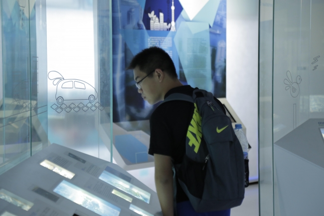在规划馆23楼的夹层上展示的是上海著名的景点与标志性街道,用现代化简约、大方的形式展现出来,让同学们都体会到了魔都的“逼格”,也渐渐地感到在国际化大都市学习、生活的幸福。