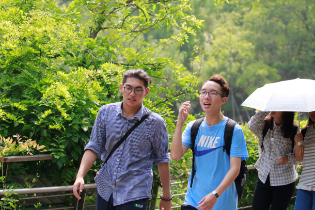 进入吴淞炮台湾湿地公园,张勇老师、王莉萍老师、胡诗朦和杨欣助教给同学们简单讲述了一下活动安排与注意事项后,同学们前往矿坑花园。