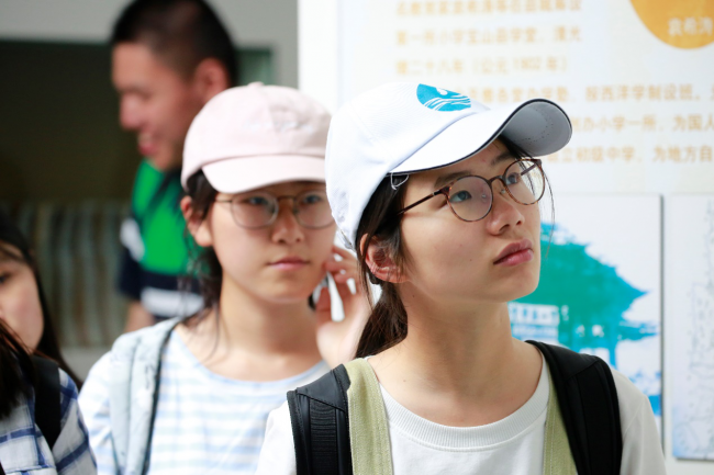 同学们观看长江河口造船发展史