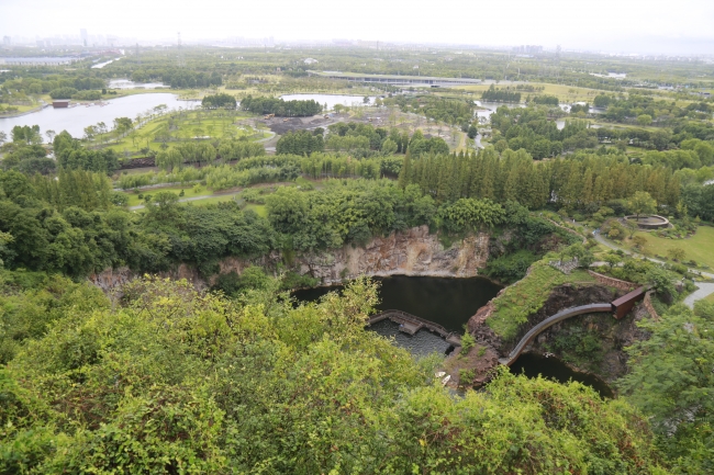 下午三点自由参观结束后,同学们共同前往辰山。辰山属于佘山山系,海拔约70米 。明代董其昌记载,辰山“在诸山之东南,次于辰位”,也以此得名。20世纪由于采石,山的南坡已被削去。在植物园的设计中,这一部分被改造成为矿坑花园。矿坑花园的原址为一处采石场遗址,设计者通过生态修复,并对深潭、坑体、迹地及山崖进行适当的改造,使其成为一座风景秀美的花园。