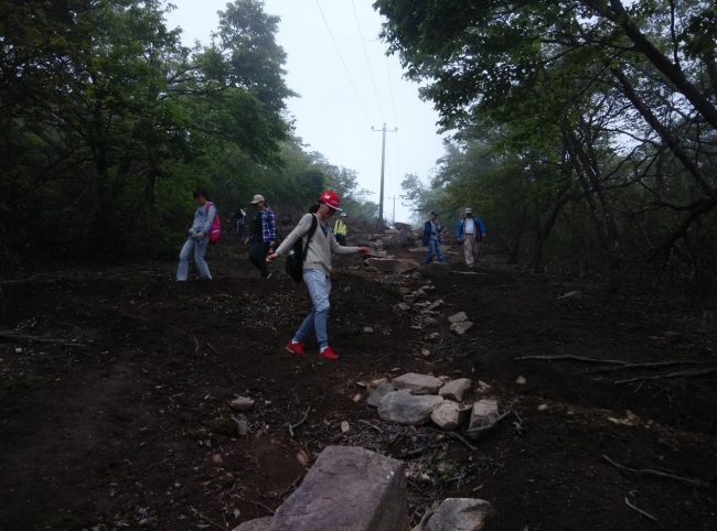 登顶学生沿着防火道下山