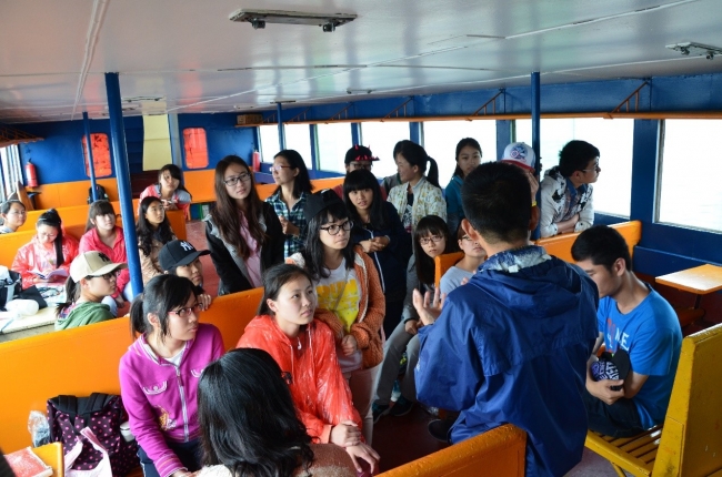 学生正在登船前往千岛湖湖面取水