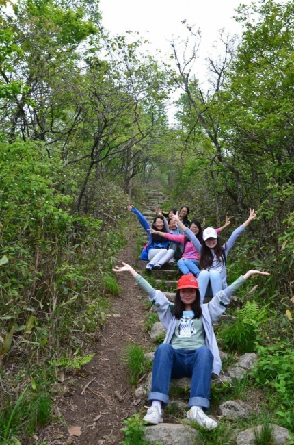 学生登顶之后下山的喜悦