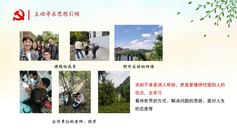 活动的第二部分是毕业生党员交流会。慈航同学结合科研和党支部工作的收获,拟定的分享主题为 “不忘初心,砥砺前行”。对于科研,她分享了四点心得:一是科研兴趣,兴趣是最好的老师,热爱科研才能快乐地坚持下去;二是选好研究话题,尽早把关键技术和方法学会,开展实验;三是要集中时间看文献,多看文献;四是要多参加学术活动,积极展示自己的研究成果,多多交流。第二方面,她分享说支部活动和支部工作可促使大家成长,党支部活动可以加强理论知识学习,培养党员情怀,坚定党员信念。她鼓励大家积极参与支部的工作和活动,这样能得到更好的锻炼和成长。最后她希望大家都不忘入党的初心,不忘科研的初心,不忘读博的初心,勇敢向前走!