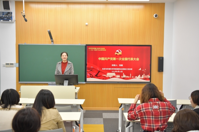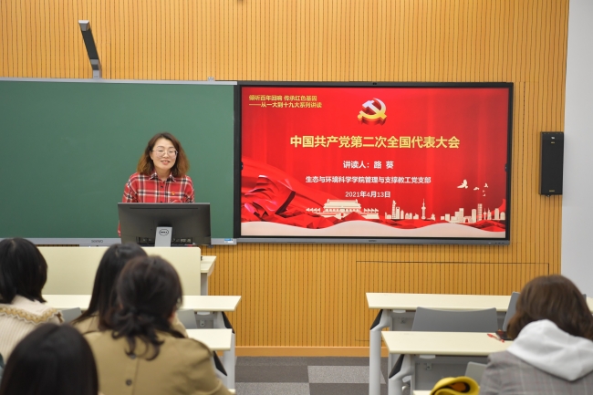 4月13日中午,闵行校区第二教学楼108室,微党课正式开讲,第一讲由生环学院党委书记刘婕讲读“从红船精神中汲取奋进力量——中共一大历史回顾”。在微党课第一部分,刘老师从中共一大召开的背景、会议的议程和取得的成果详细阐述了中共一大的来龙去脉。在会议背景环节,刘老师运用图片和简要文字讲述了从20世纪初的军阀割据到陈独秀创办《新青年》,从俄国十月革命一声炮响到北京爆发学生群众的“五四运动”,推动了马克思主义在中国的广泛传播,促进了共产党小组或支部的诞生。在会议议程和成果环节,刘老师带领大家共同回顾了中共一大的筹备与召开过程、大会通过的党的第一个纲领和第一个决议的重要作用,阐明了中共一大的重要历史意义。在微党课第二部分,刘老师结合管理与支撑岗教师的实际工作,分析了“红船精神”所蕴含的伟大思想和时代价值,结合管理与支撑岗的工作实际,带领大家思考和分析如何从“红船精神”中汲取奋进的力量,在实践中弘扬“红船精神”所蕴含的首创精神、奋斗精神和奉献精神。刘老师结合管理与支撑岗教师如何在学校卓越育人工作中发挥作用的思考,分析了新形势下对管理和支撑岗教师的更高要求,勉励大家要树立爱岗敬业的精神,加强政治思想修养,不断丰富管理理论知识,增强统筹协调和学习研究的能力,成为“管理理念的创新践行者”、“管理事务的主动承担着”、“管理改革的有力推行者”。