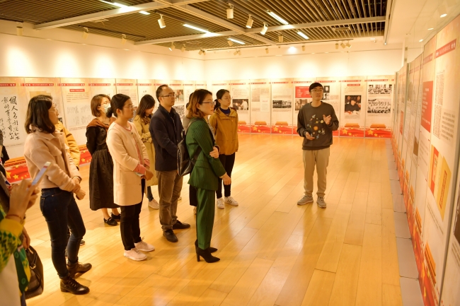 管理与支撑教工党支部全体党员来到我校闵行校区图书馆参观《陈云与党风廉政建设》专题展。