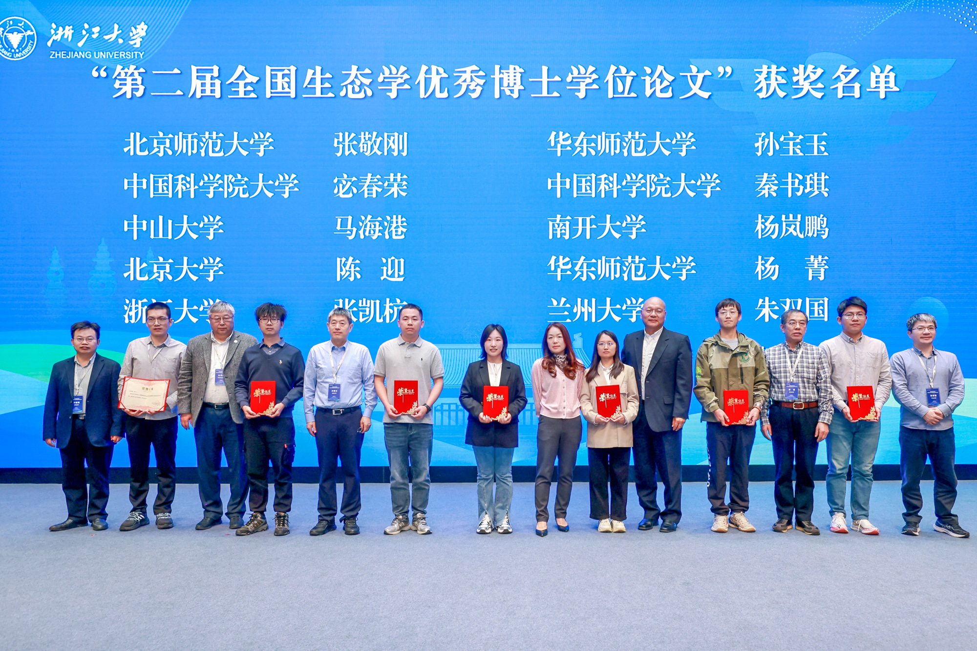 近日,由国务院学位委员会生态学学科评议组组织的2024年全国生态学优秀博士学位论文评选结果揭晓,华东师大av影片 2022届博士毕业生杨菁的学位论文《实验检验种内和种间性状差异对幼苗竞争的响应》(指导教师:王希华教授、沈国春教授)和2022届博士毕业生孙宝玉的学位论文《模拟增温对黄河三角洲湿地生态系统碳循环关键过程的影响及机制》(指导教师:夏建阳教授)获评第二届全国生态学优秀博士学位论文。颁奖典礼于3月22日在浙江大学举行,中国科学院院士、北京大学教授方精云和国务院学位委员会生态学学科评议组的部分成员出席了颁奖典礼。