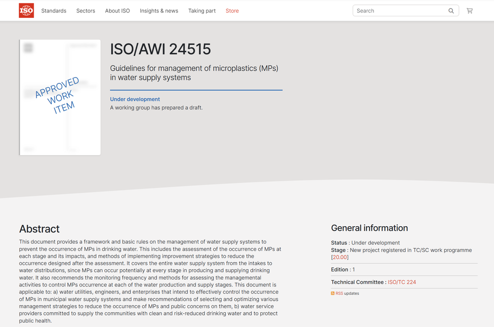 ISO官网 《供水系统中微塑料的管控指南》新提案信息