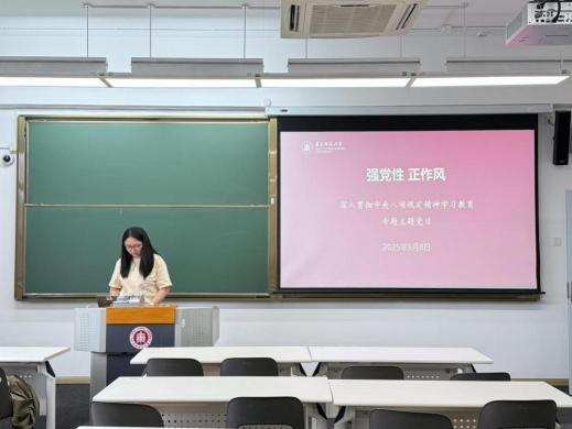 为深入贯彻习近平新时代中国特色社会主义思想,落实党的教育方针,进一步加强党员的政治素养和理论水平,生环学院2024级环境学硕士研究生党支部于2025年5月8日开展了《深入贯彻落实八项规定精神学习教育》专题主题党日活动。本次活动分为:支部书记讲党课、对集中培训的内容进行研讨交流、党员对照查摆问题三部分内容,旨在加强党性教育,提升党支部成员的责任意识与使命担当。本次党日活动由支部书记徐寒雨主持。顾佳艳老师与刘敏老师参加此次活动。