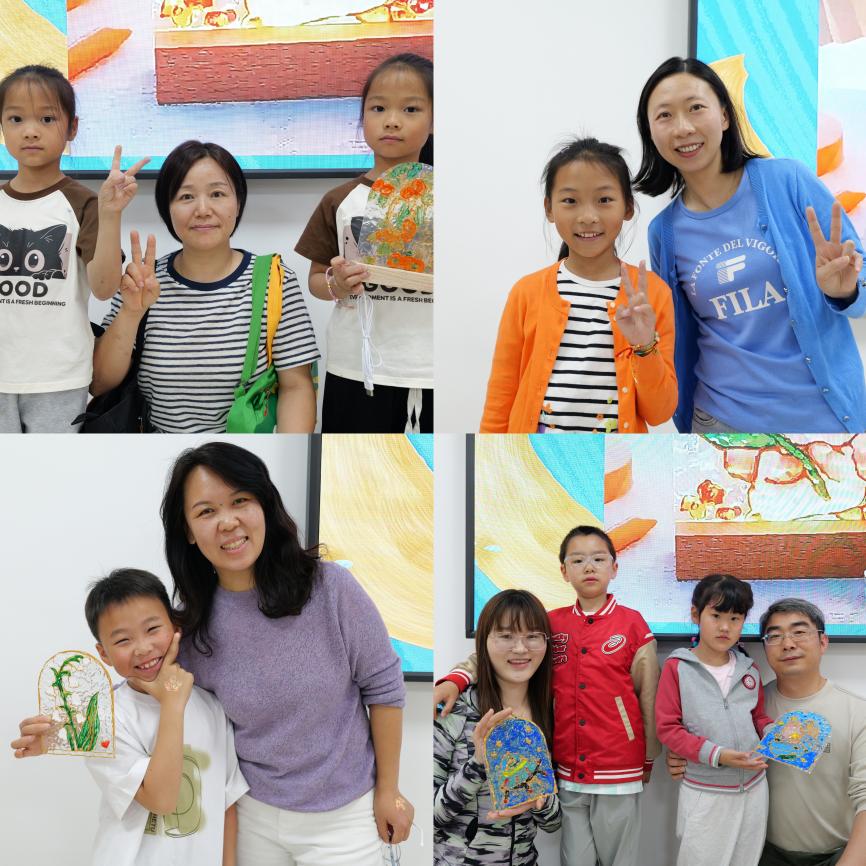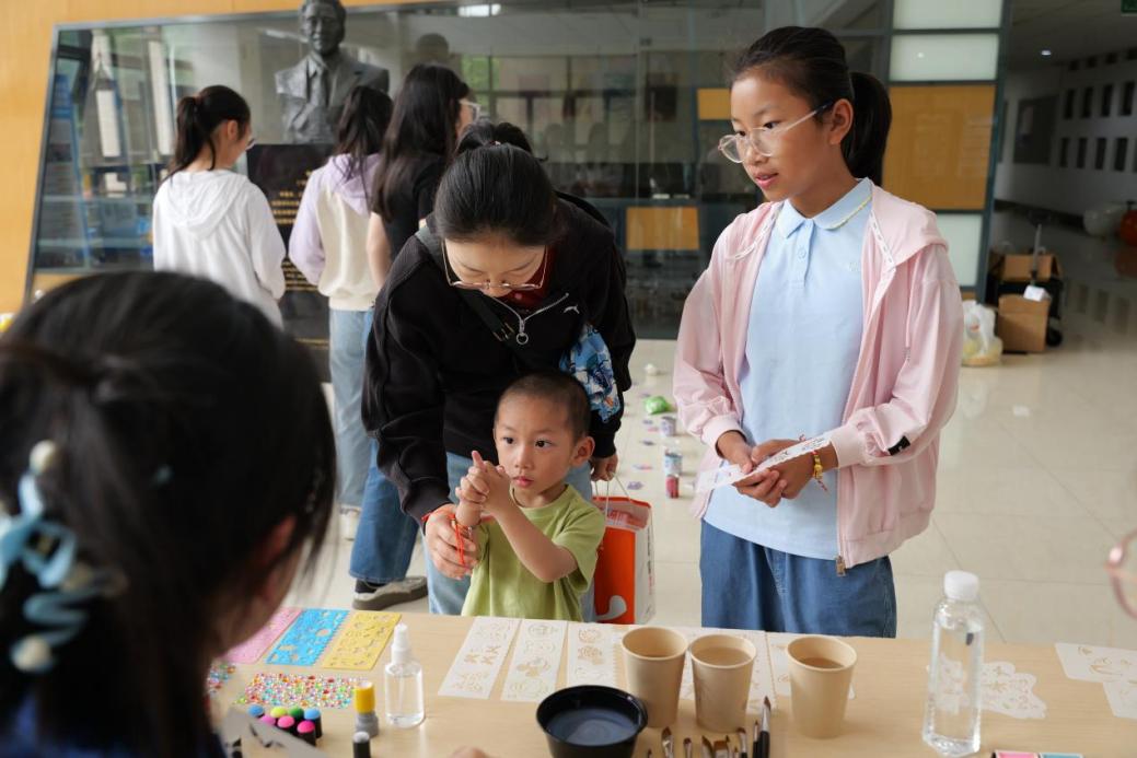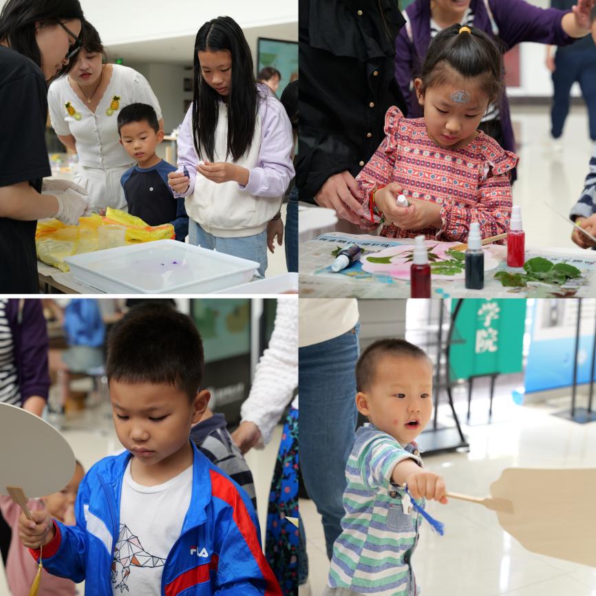DIY制作区域提供了颜料、画笔、团扇和丝巾等丰富材料。小朋友们化身为小小艺术家,手持颜料,在扇面和丝巾上自由创作,将天马行空的想象化作生动图案,成为一件件独特的艺术品。