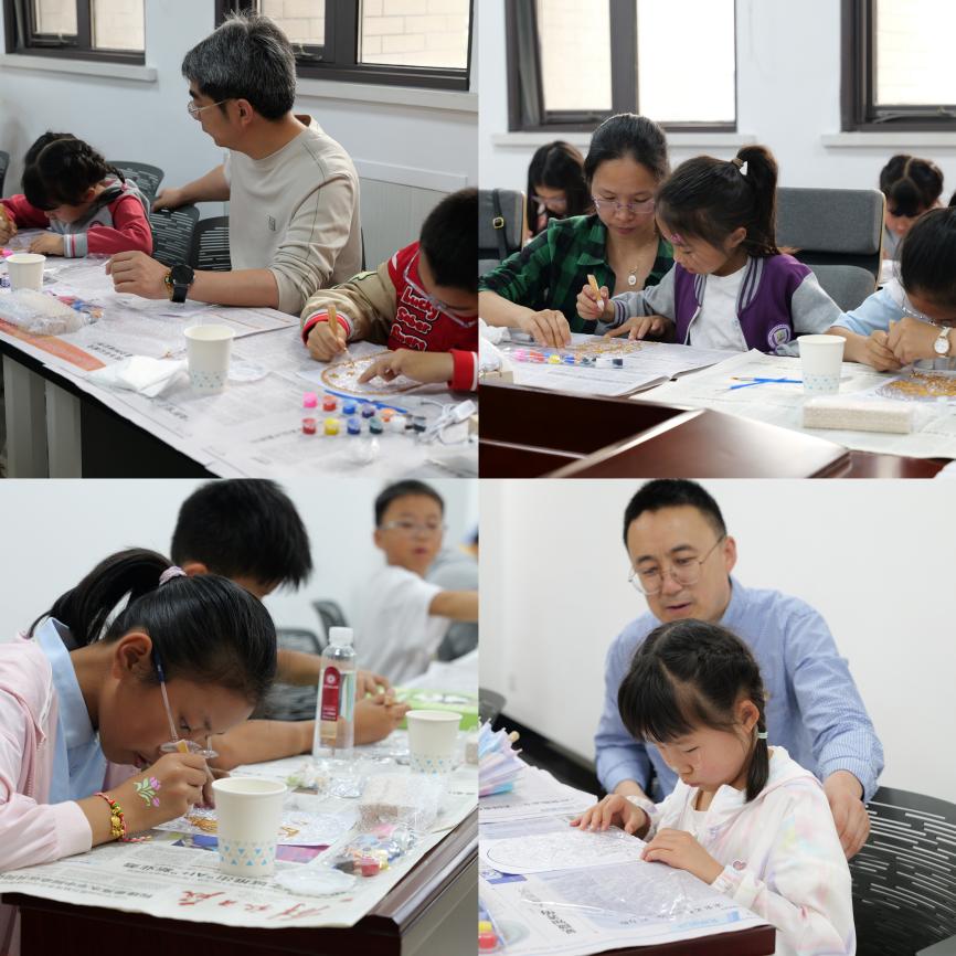 游园会活动结束后,小朋友们前往资环楼269室进行手工体验——玻璃画小夜灯活动。家长和孩子们一起调色、绘图、点缀装饰,小小的面板渐渐被五彩斑斓的颜色填满,制作出独一无二的小夜灯,为夜晚增添一份梦幻的氛围。