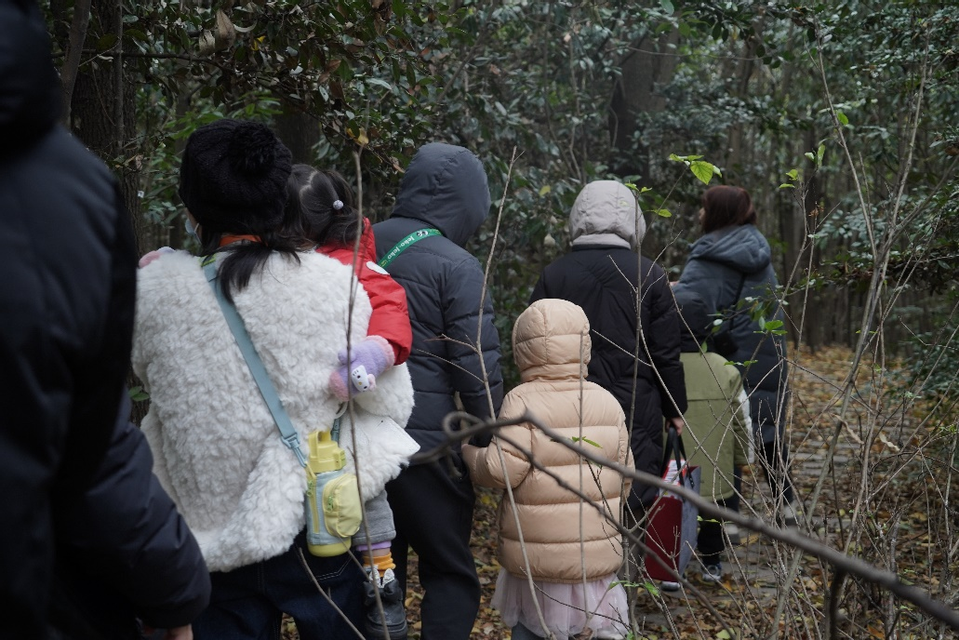 华师大樱桃河上的生态岛,是一个长满各种植物的小岛,也是很多鸟类与昆虫的栖息家园。在21级生态学专业博士研究生罗心怡的讲解下,小朋友和家长们开启了他们生态岛的初次“探险之旅”。看着沿路的风景,小罗老师也讲起了有关生态岛的“前世今生”。这个名为“生态岛”的小岛是在校园建设初期产生的建筑垃圾堆上建成的,小岛在改善校园环境的同时,也为大家提供了良好的生态教育场所,成为校园生态文化的“生命地标”。生态岛上绿意盎然的树木与草本,给原本寒冷的冬季增添了更多的活力,让踏上这片岛上的我们也感受到了大自然的魅力。