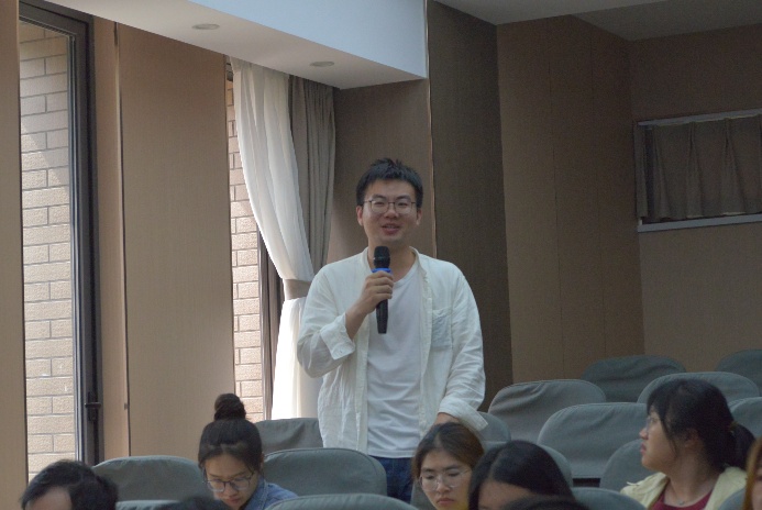 在经验分享环节,三位博士生代表依次发言,分享了他们的学习经历和心得。