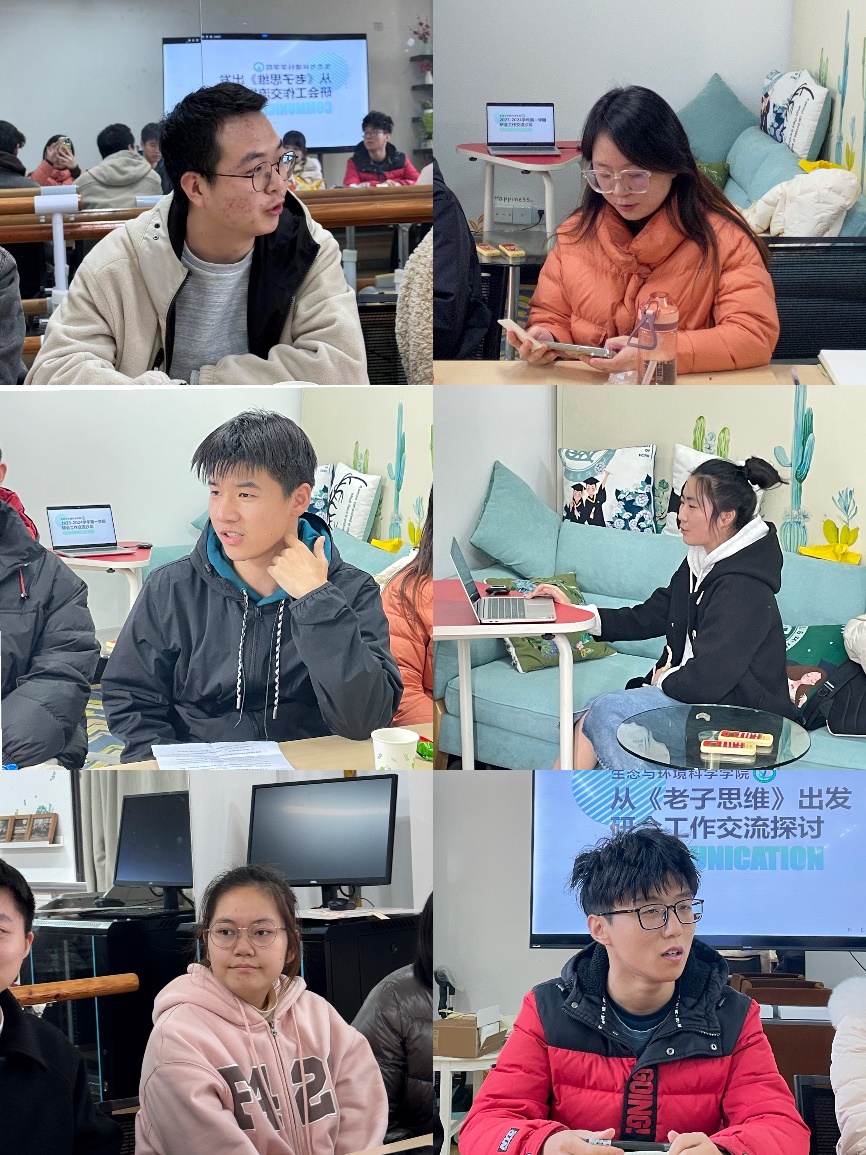 为普及量子思维,改进传统思维模式,激发学生组织创新管理潜能,2024年1月9日下午13:30,av影片 研究生会“体悟老子之“道”,共话创新未来”工作交流沙龙在资环楼146室举行。院党委副书记路葵、研会指导老师吴丹及第十届研会主席团成员、部门负责人参加本次活动。第十届研会主席团成员朱泓恺担任主持。