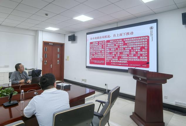 参观结束后,党员们返回资环楼269会议室。学院副院长陈雪初以“深入学习习近平总书记关于加强党的作风建设的重要论述”为题,为两个支部的党员上党课,院长夏建阳、副书记王晶晶作为结对联系两个党支部的学院党委委员参与学习和讨论。
