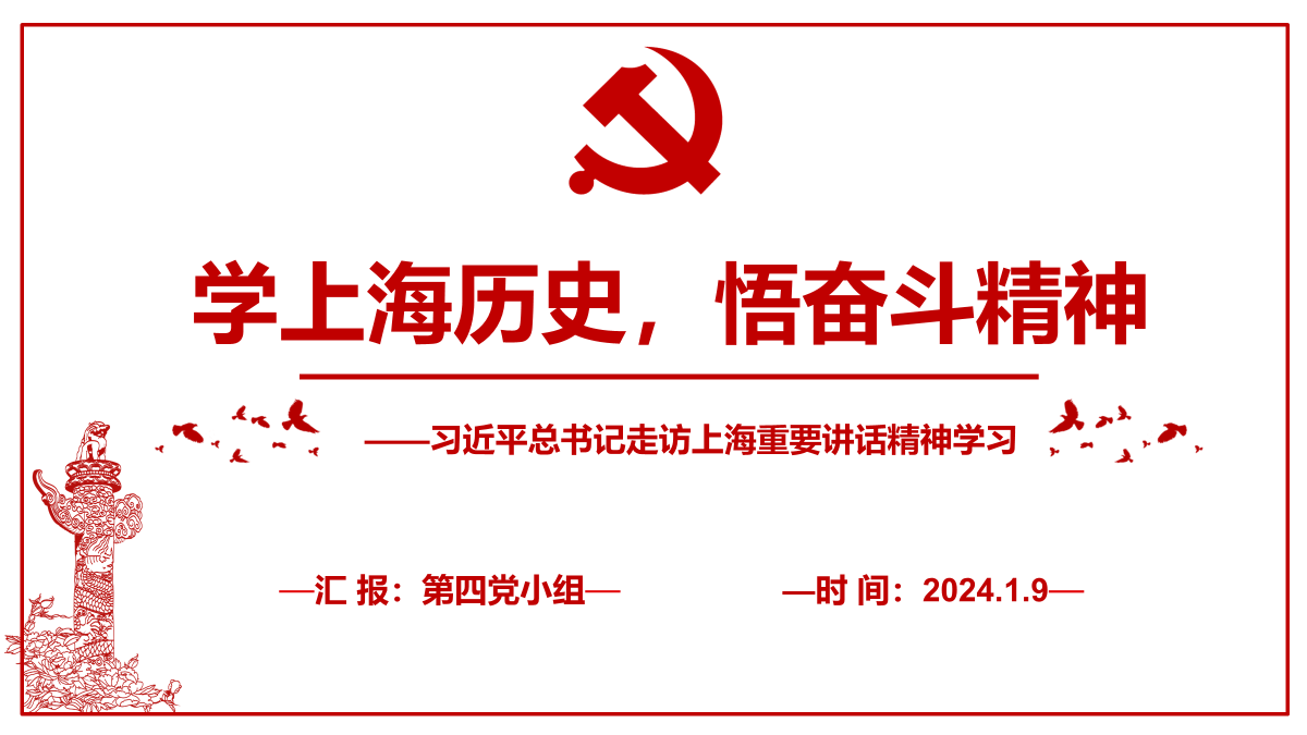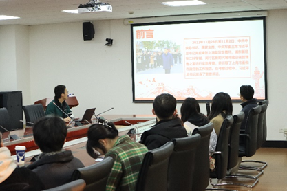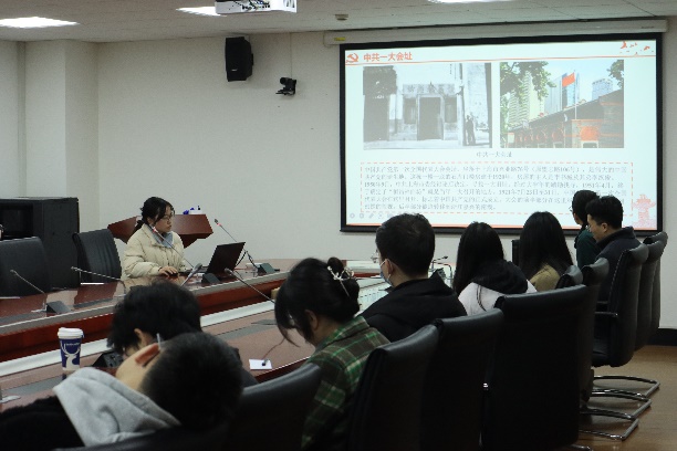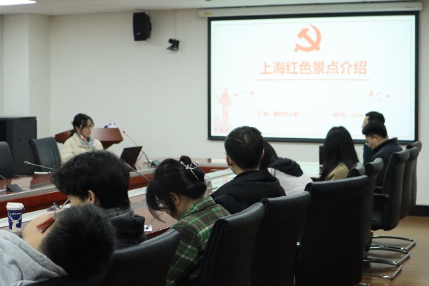 随后,支部第4党小组成员分别就“习近平总书记考察上海重要讲话内容、上海百年发展史、上海红色景点”三部分展开介绍,向大家详细讲解了习近平总书记此次考察上海的重要意义,和大家循着历史的脚步去探寻这座具有厚重感的文化名城。