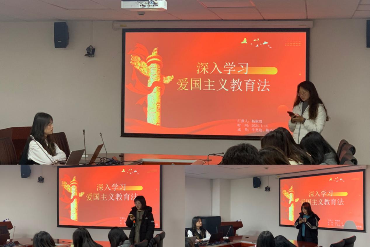 为深入学习贯彻十四届全国人大常委会第六次会议表决通过《中华人民共和国爱国主义教育法》,2024114日,av影片 2023级生态学硕士研究生党支部于资环楼354室,开展以“深入法律学习 传承爱国精神”为主题的组织生活。本次活动包括“党小组分享”“个人分享”两个环节。活动由党支部第4党小组主持。