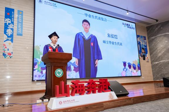 硕士毕业生代表朱泓恺,在发言中勾勒了求学生涯的“闪光图谱”:论文刊登时的欣喜、光华论坛演讲时的振奋、组织学院活动时的奋战、辩论赛场折桂时的骄傲,他亦坦诚科研路上数据颠覆预期的焦灼、报告遭到质疑的窘迫,将学术旅程比作“明暗交织的织锦”,坦言每个瞬间都在雕琢成长的肌理。
