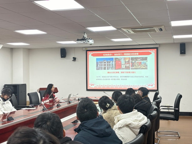 活动第二部分,由张潇文介绍家乡的红色景点——铁道游击队纪念馆。首先,张潇文同志介绍了她的家乡——薛城的地域特色与独特风情。薛城隶属于山东省枣庄市, 具有浓厚的历史底蕴,是全国唢呐之乡、全国剪纸之乡、全国武术之乡、山东快书发源地、造车鼻祖奚仲故里、全国群众文化先进区、铁道游击队的故乡。随后,张潇文重点介绍了铁道游击队的由来和发展,这支部队最早发端于1938年夏,是在洪振海、王志胜建立的抗日情报站基础上发展起来的。《弹起我心爱的土琵琶》是专门为影片《铁道游击队》创作的插曲,表现了游击队员在艰苦环境中的坚强意志和乐观精神,具有极强的感染力。最后,张潇文带领大家云游铁道游击队景区,共包括一碑、一廊、一馆、一城、一墓、一园、一亭、一阁、一广场九大组成部分。