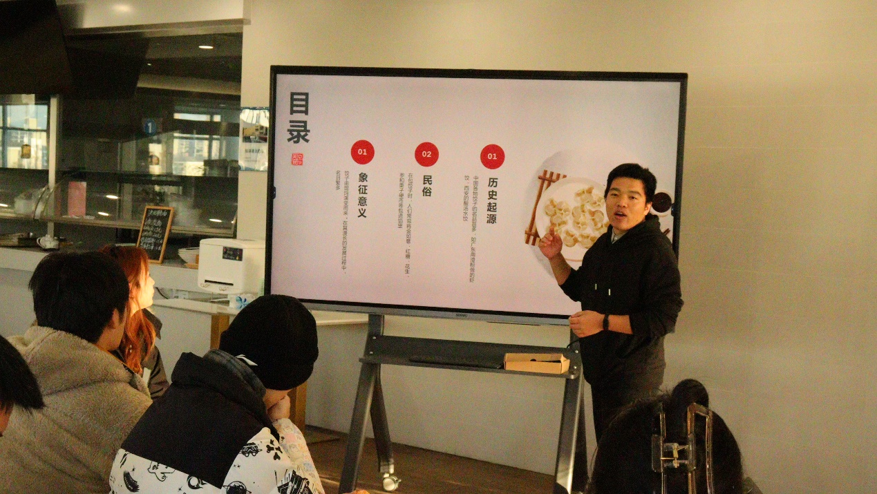 第三项活动是饺子历史介绍。2023级研究生张子扬对饺子的历史渊源、民俗和象征意义进行了介绍。在飘香的饺子香气中,同学们对饺子的历史有了更深的了解。