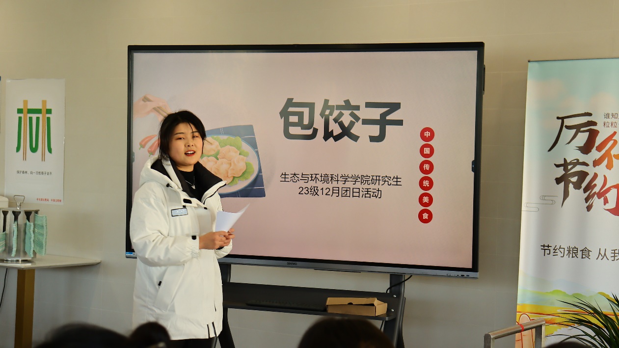 夏雨厅三层举办了以“情暖冬至 饺香生环”为主题的团日活动,本次活动由23级环境班生活委员张潇文主持。