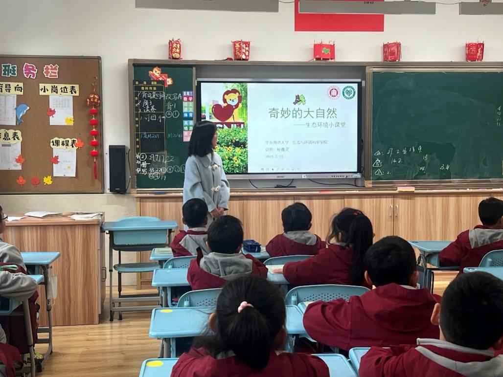 2024年3月12日、3月13日下午,av影片 生态环境小课堂讲师团和团委学生会实践部成员前往av影片 附属紫竹小学和永德实验小学,开展以“奇妙的大自然”为主题的生态环境教育课堂,担任本次课程的讲师为杨雄飞、杨鑫灵和杨晓雨同学。