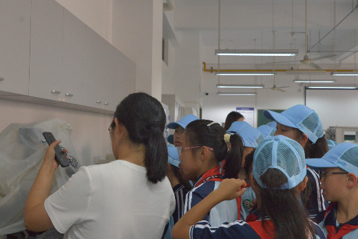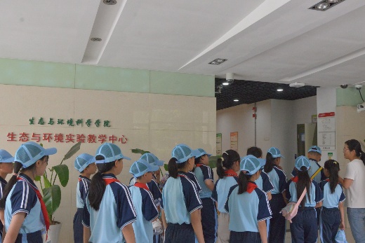 下午13:00,师生们首先来到生态与环境实验教学中心。走进现代化的实验室,同学们被各种先进的实验设备、丰富的科研标本和严谨的科学氛围所吸引。在学院实验中心副主任崔玉雪老师的带领和讲解下,小朋友们了解了大学生的实验课程设置、科研训练及科学研究方法,感受到了高校学习生活的严谨与充实。