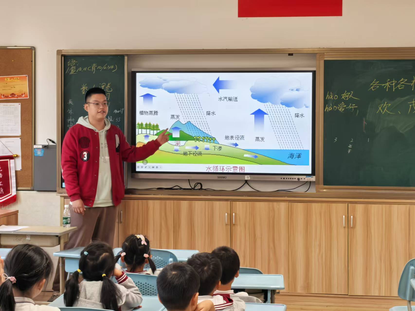2024年10月22日-24日下午,av影片 生态环境小课堂讲师团、研究生会秘书部的成员们分别前往av影片 附属紫竹小学、闵行永德学校与马桥民办小学开展水循环与水资源保护环教课,王九洲和陈子萌担任本次课程的讲师。