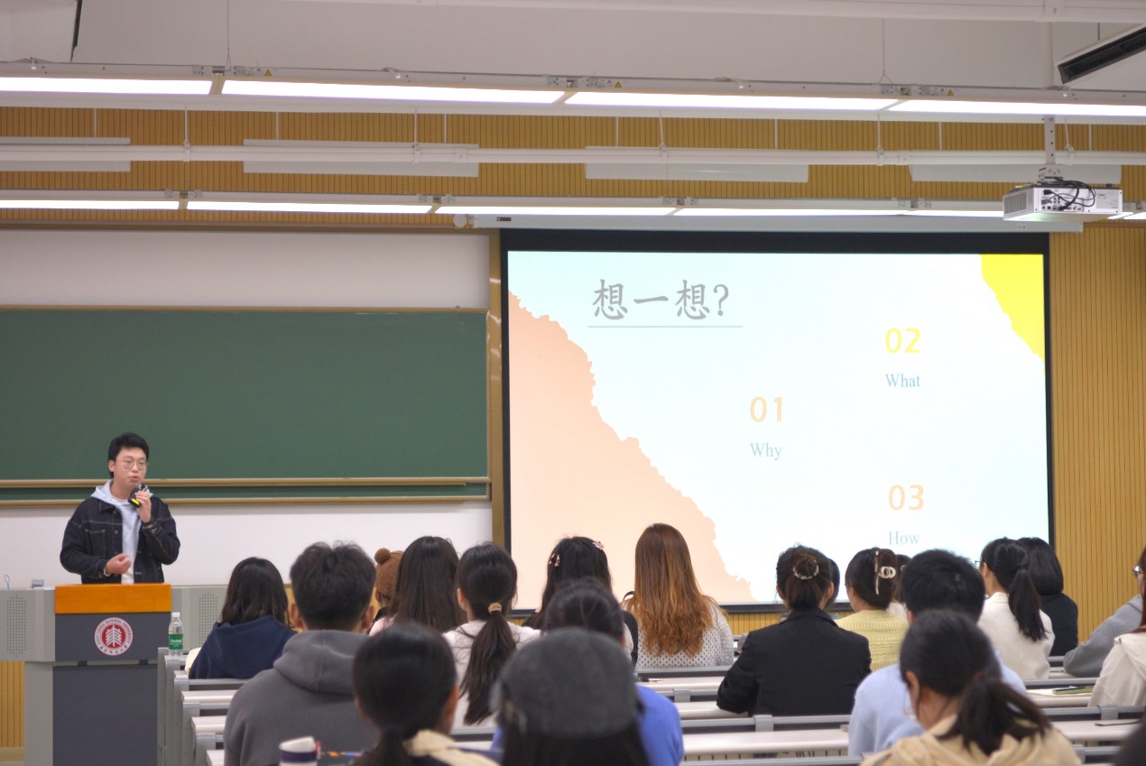 活动伊始,王九洲同学介绍了三位分享嘉宾的基本情况,希望通过嘉宾们分享的就业经历和感悟,为同学们开拓视野,提供职场经验,化解求职焦虑,确立就业方向。
